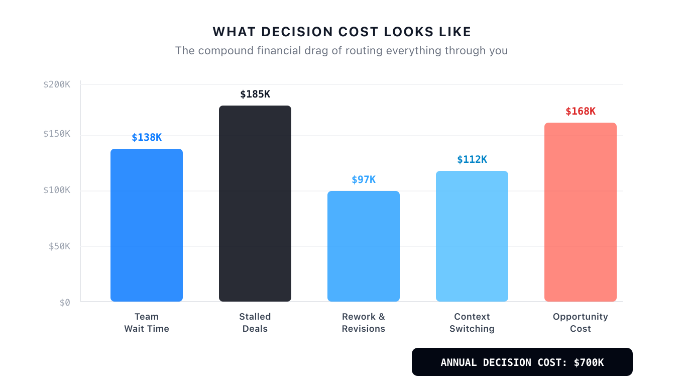 Count how many decisions came to you yesterday that someone else could have made with the right authority and context. If the number is higher than five, Decision Cost is actively compounding in your business.